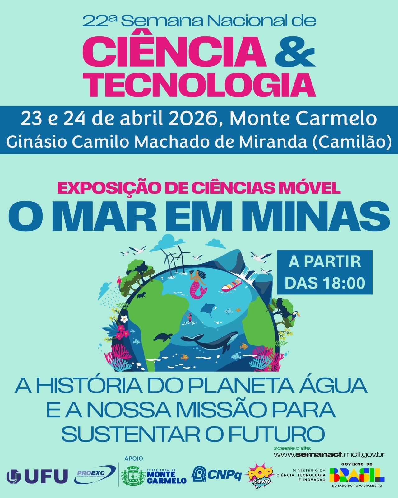 A 22ª Semana Nacional de Ciência e Tecnologia (SNCT) chega a Monte Carmelo com uma programação voltada à divulgação científica e à conscientização ambiental. O evento será realizado nos dias 23 e 24 de abril de 2026, no Ginásio Camilo Machado de Miranda (Camilão), com atividades a partir das 18h.