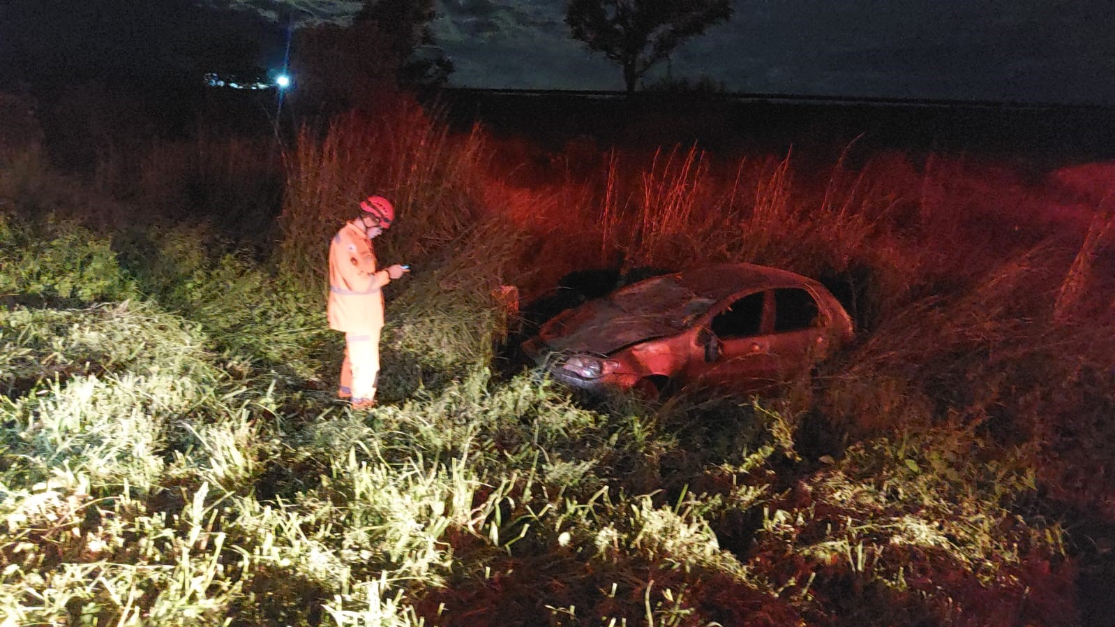 No local haviam duas vítimas, conscientes, orientadas, apresentando escoriações e contusões leves na região das costas e flancos. Segundo o condutor do veículo L.F.Q e S. vinha em seu veículo pela BR 365, um Fiat Palio, momento em que perdeu o controle, vindo a capotar o veículo.