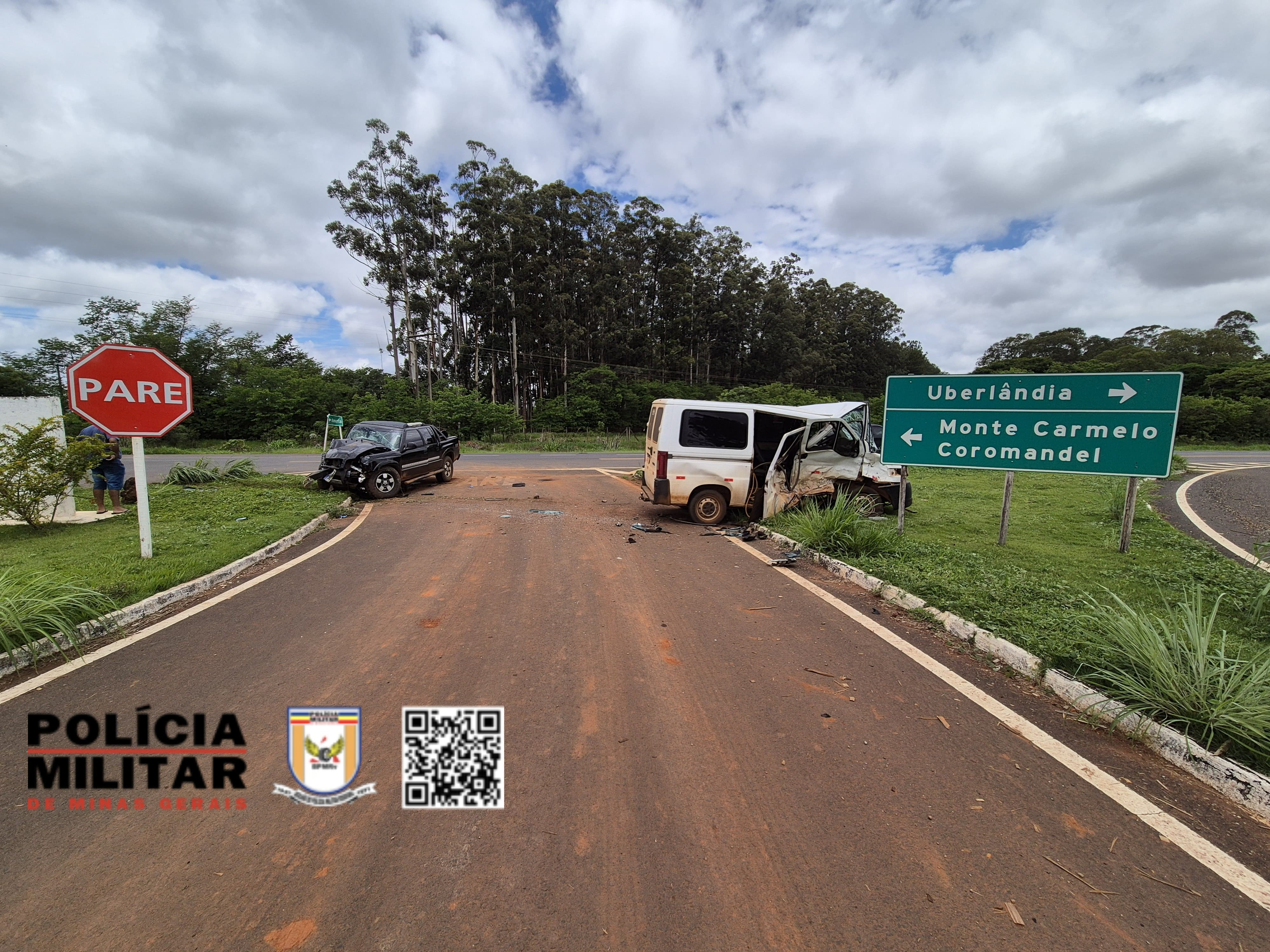 A Polícia Militar de Minas compareceu na Rodovia Estadual MG-190 KM-52 (trevo de acesso a cidade de Romaria), onde ocorreu uma colisão envolvendo o Microônibus PEUGEOT/BOXER com placas de Romaria e a Caminhonete GM/S10 também com placas de Romaria. Os veículos eram ocupados apenas por seus condutores, que foram socorridos pelo SAMU ao PSM de Monte Carmelo.