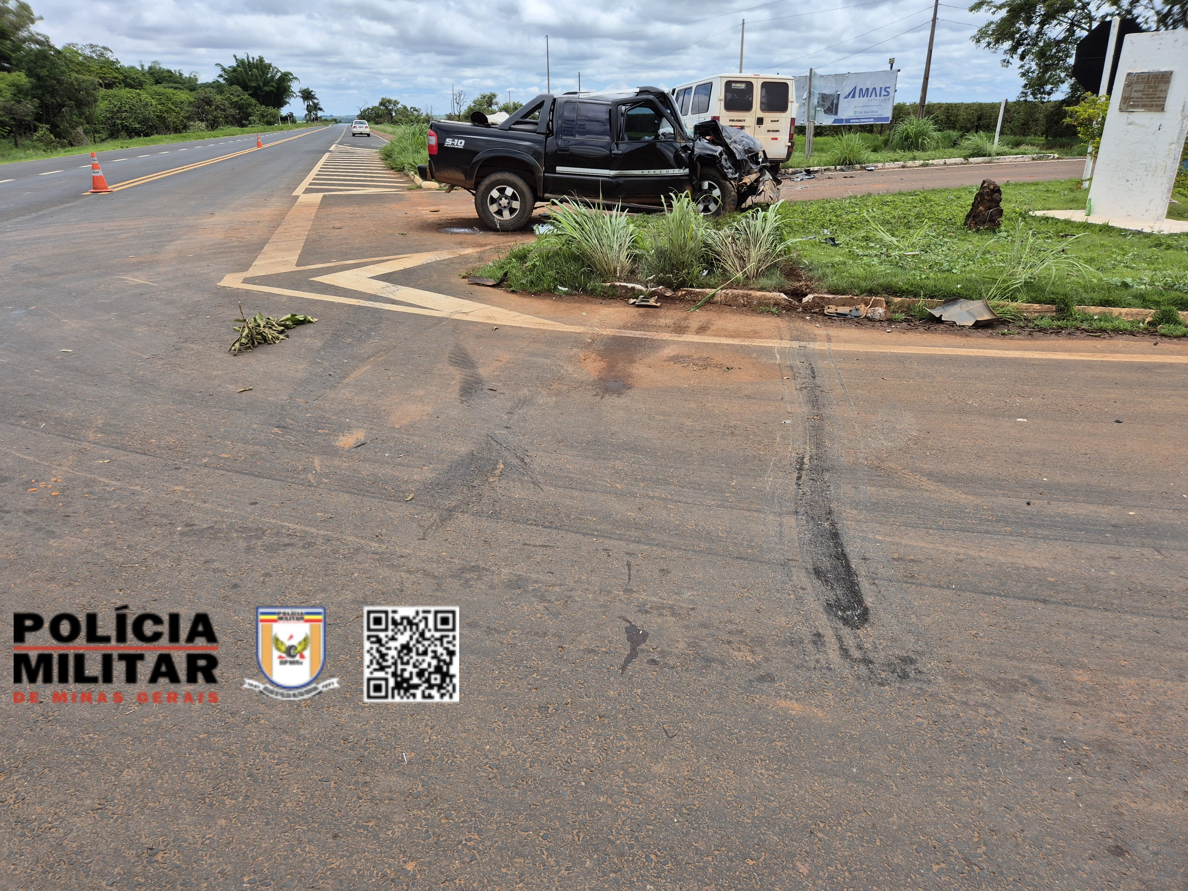 A Caminhonete era conduzida por um jovem de 25 anos de idade que sofreu fratura no fêmur direito e permaneceu em observação hospitalar em Monte Carmelo. Conforme relato do condutor da caminhonete, ele seguia pela MG-190 de Monte Carmelo sentido a rodovia BR-365, ao se aproximar do trevo de acesso a Romaria, visualizou o microônibus em sentido oposto ao seu, repentinamente o Microônibus atravessou a pista de rolamento sem observar o fluxo contrário para acessar o trevo com destino a cidade de Romaria, ocorrendo a colisão frontal da Caminhonete contra a lateral direita do Microônibus.