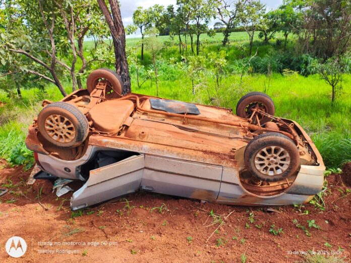 A Polícia Militar Rodoviária atendeu um acidente registrado no km 20 da MG-223, no município de Monte Carmelo. Ao chegarem ao local, os militares encontraram um Fiat Uno e um reboque capotados na área de domínio do DER, com os veículos posicionados de cabeça para baixo.