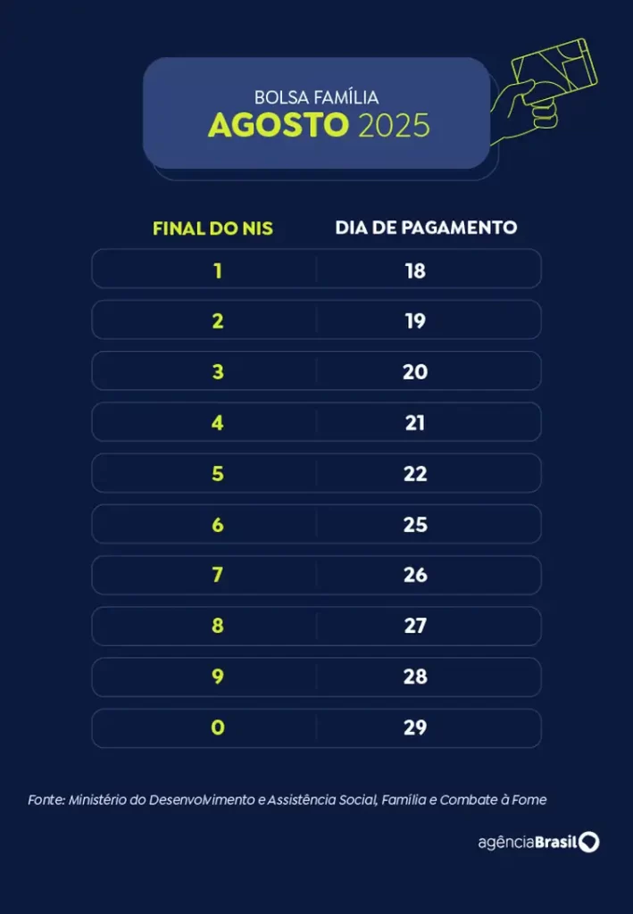 A Caixa Econômica Federal começa a pagar a parcela de agosto do Bolsa Família. Recebem nesta segunda-feira (18) os beneficiários com Número de Inscrição Social (NIS) de final 1.