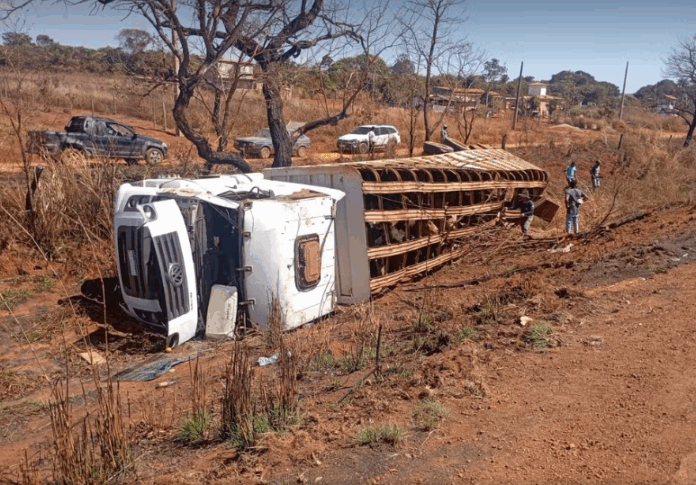 Um caminhão boiadeiro tombou na altura do km 176 da rodovia MG-188, em Paracatu. O veículo seguia sentido Paracatu a Ituiutaba quando saiu da pista e caiu em uma valeta às margens da rodovia. Com isso, o motorista perdeu o controle e o caminhão boiadeiro tombou.