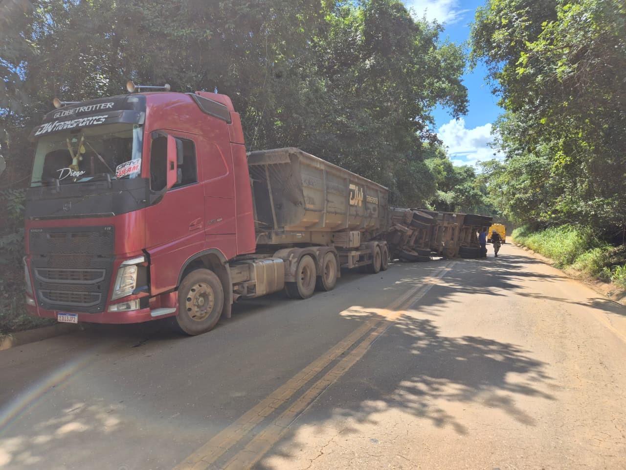 Com o tombamento, o último semirreboque e o penúltimo reboque da combinação veicular ficaram atravessados na pista de rolamento. Parte da carga, cerca de 49 toneladas de soja a granel, se espalhou pela rodovia, prejudicando o tráfego. Equipes da Polícia Militar Rodoviária estiveram no local e controlaram o trânsito no sistema “pare e siga” durante o atendimento da ocorrência.