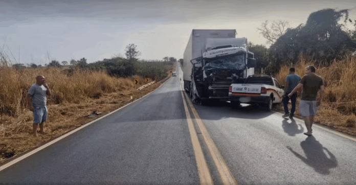Uma ema morreu no último sábado (23) após causar um acidente envolvendo duas carretas e uma caminhonete na MGC-497. Segundo a Polícia Militar Rodoviária, as duas carretas transportavam calçados e seguiam no sentido Uberlândia-Prata quando o motorista do primeiro veículo reduziu a velocidade para não atropelar a ema que cruzava a pista.