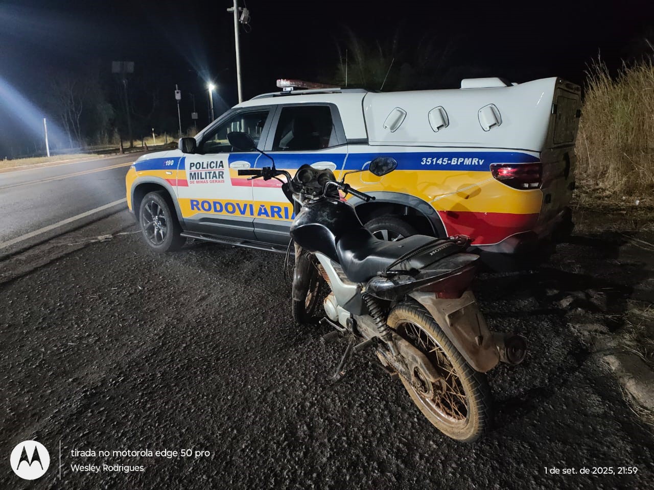 Na noite desta segunda-feira a Polícia Militar Rodoviária realizou uma operação de fiscalização na rodovia MG-190, Km 21, em Monte Carmelo, que resultou na prisão de um homem de 32 anos por adulteração de veículo. Durante a abordagem, os policiais verificaram que a motocicleta Honda/CG Fan 150, de cor preta, conduzida pelo suspeito, não possuía placa de identificação.