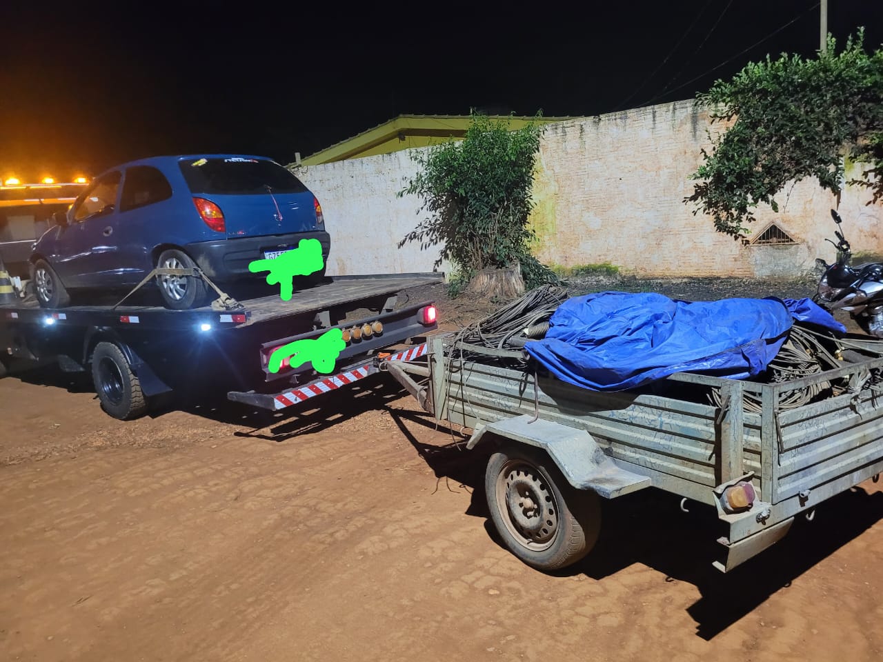 Em Monte Carmelo durante o turno de serviço, equipe da Patrulha de Operações flagrou um veículo na MG-190 com reboque e material de fio de cobre utilizado em energia fotovoltaica, que foi subtraído em grande proporção.