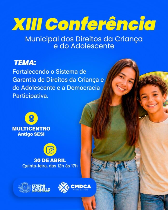 A cidade de Monte Carmelo se prepara para sediar a XIII Conferência Municipal dos Direitos da Criança e do Adolescente, um importante espaço de diálogo, reflexão e construção coletiva de políticas públicas voltadas à proteção e ao desenvolvimento de crianças e adolescentes.