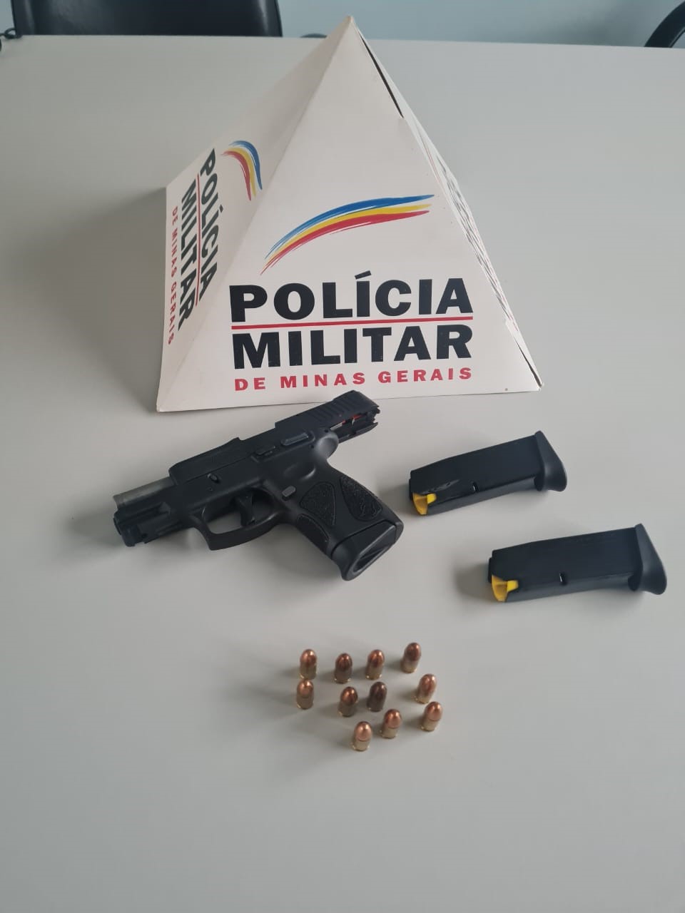 A Polícia Militar de Coromandel desencadeou uma Operação de Cumprimento de Mandado de Busca e Apreensão no centro da cidade, com o objetivo de prevenir possíveis crimes de homicídio ligados a situações de violência doméstica e familiar. Durante as diligências, a equipe da Patrulha de Operações realizou a abordagem à residência alvo da ordem judicial e, no curso das buscas, foi localizada 01 arma de fogo do tipo pistola, calibre 9mm, acompanhada de 03 carregadores e 11 munições do mesmo calibre, que foram apreendidos. O autor, homem de 45 anos, encontra-se atualmente preso no presídio local. A arma de fogo e os demais materiais foram apreendidos e encaminhados à Polícia Judiciária para os devidos procedimentos legais.