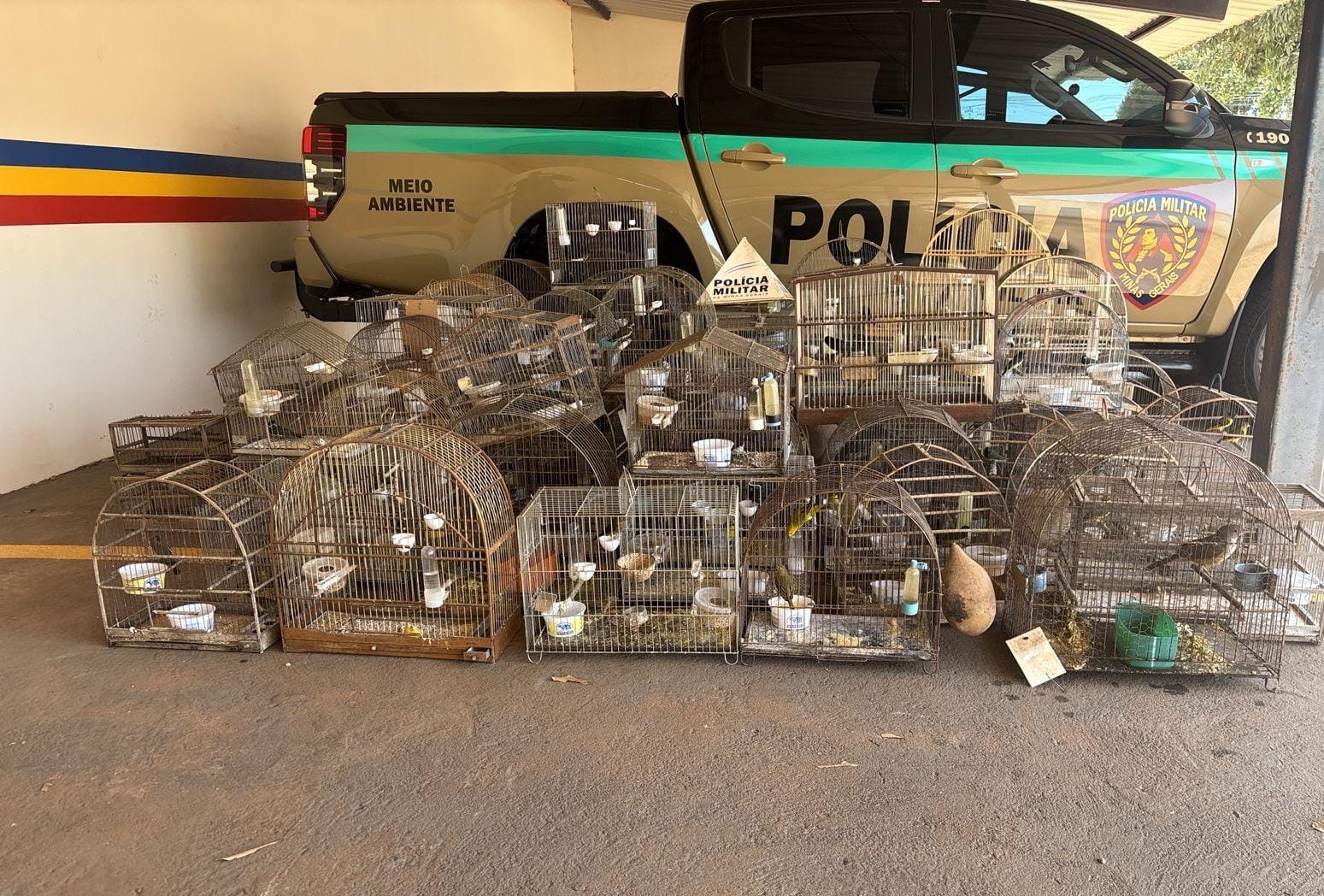 Nesta terça-feira a Polícia Militar de Meio Ambiente realizou uma operação na zona urbana de Coromandel que resultou na apreensão de 83 pássaros da fauna silvestre brasileira mantidos em cativeiro de forma ilegal.