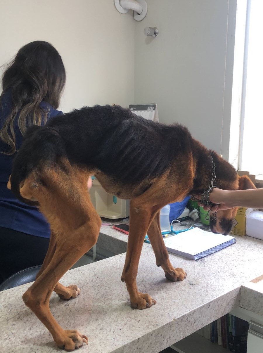 Durante a ação, os militares constataram que uma cadela sem raça definida era mantida em um local sem condições adequadas de higiene e alimentação. O animal apresentava extrema magreza e sinais evidentes de debilidade física, indicando um quadro prolongado de negligência. Segundo informações colhidas no local, a cadela vivia nessa situação há vários meses.