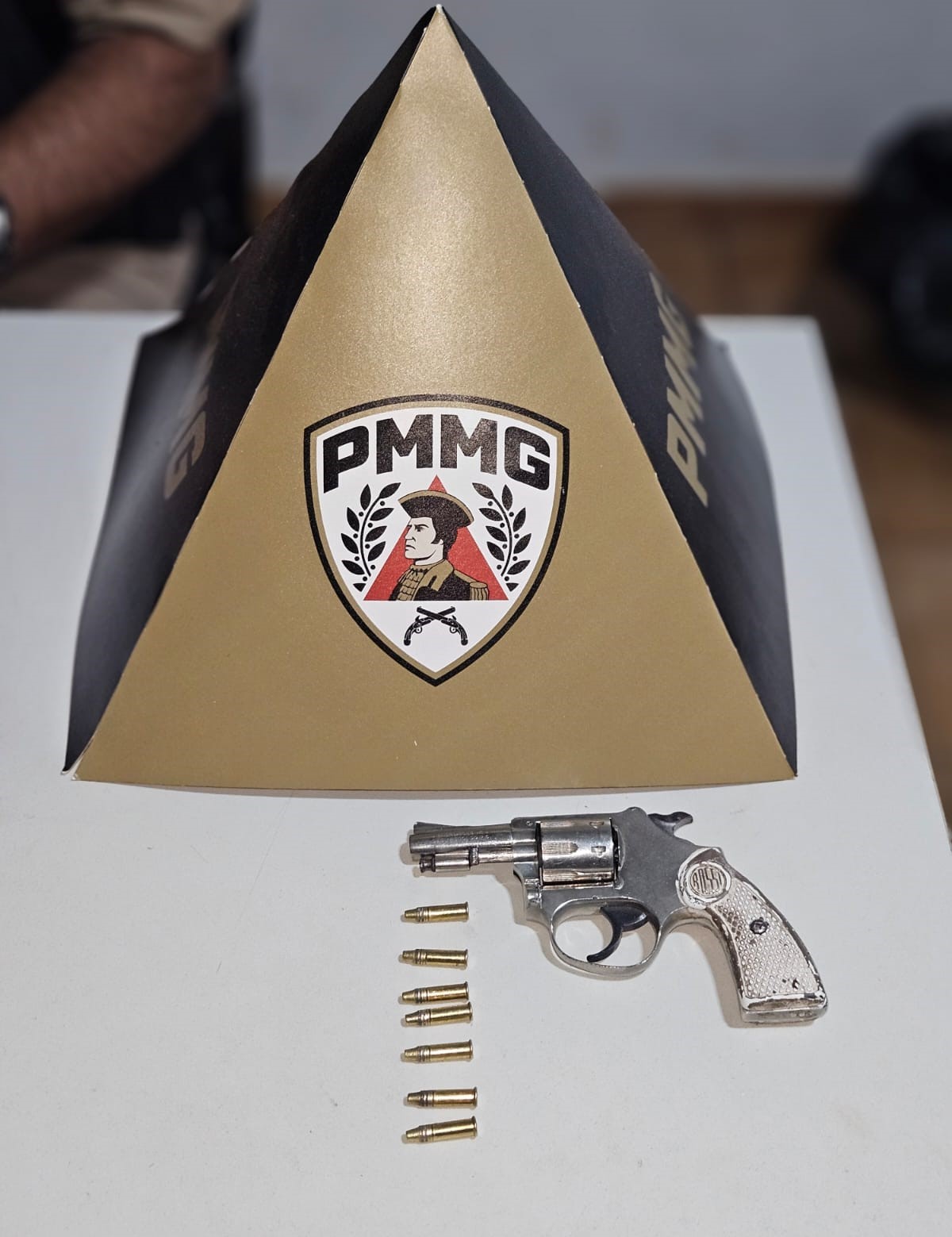 Durante a intervenção policial, foi localizado com o suspeito um revólver calibre .22, caracterizando o crime de porte ilegal de arma de fogo.