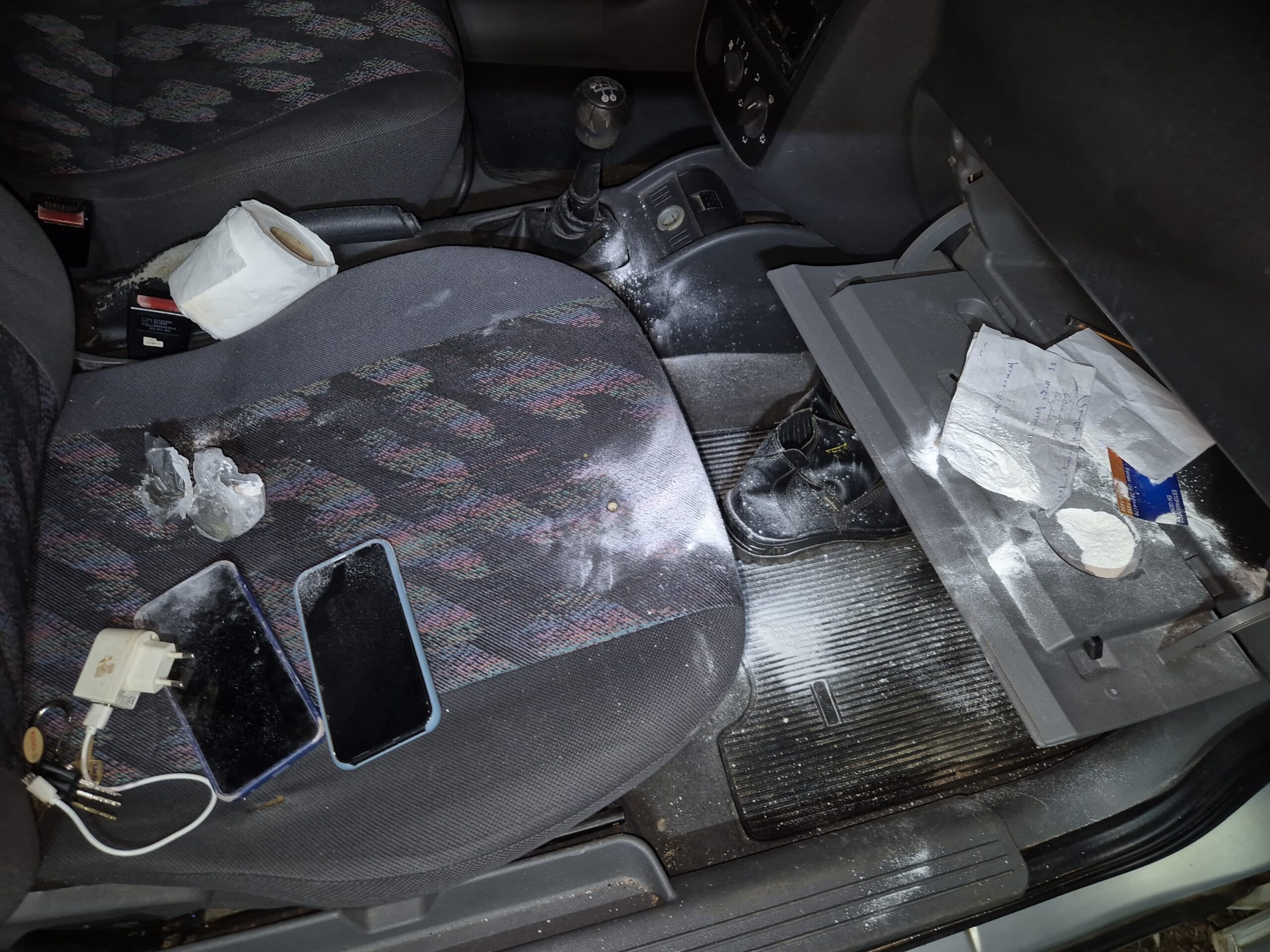 Durante a fiscalização de trânsito, o passageiro tentou esconder dentro do porta luvas um invólucro plástico contendo cocaína, enquanto iniciada a abordagem ao passageiro, o condutor do veículo tentou se desfazer da cocaína espalhando a droga no interior do automóvel.