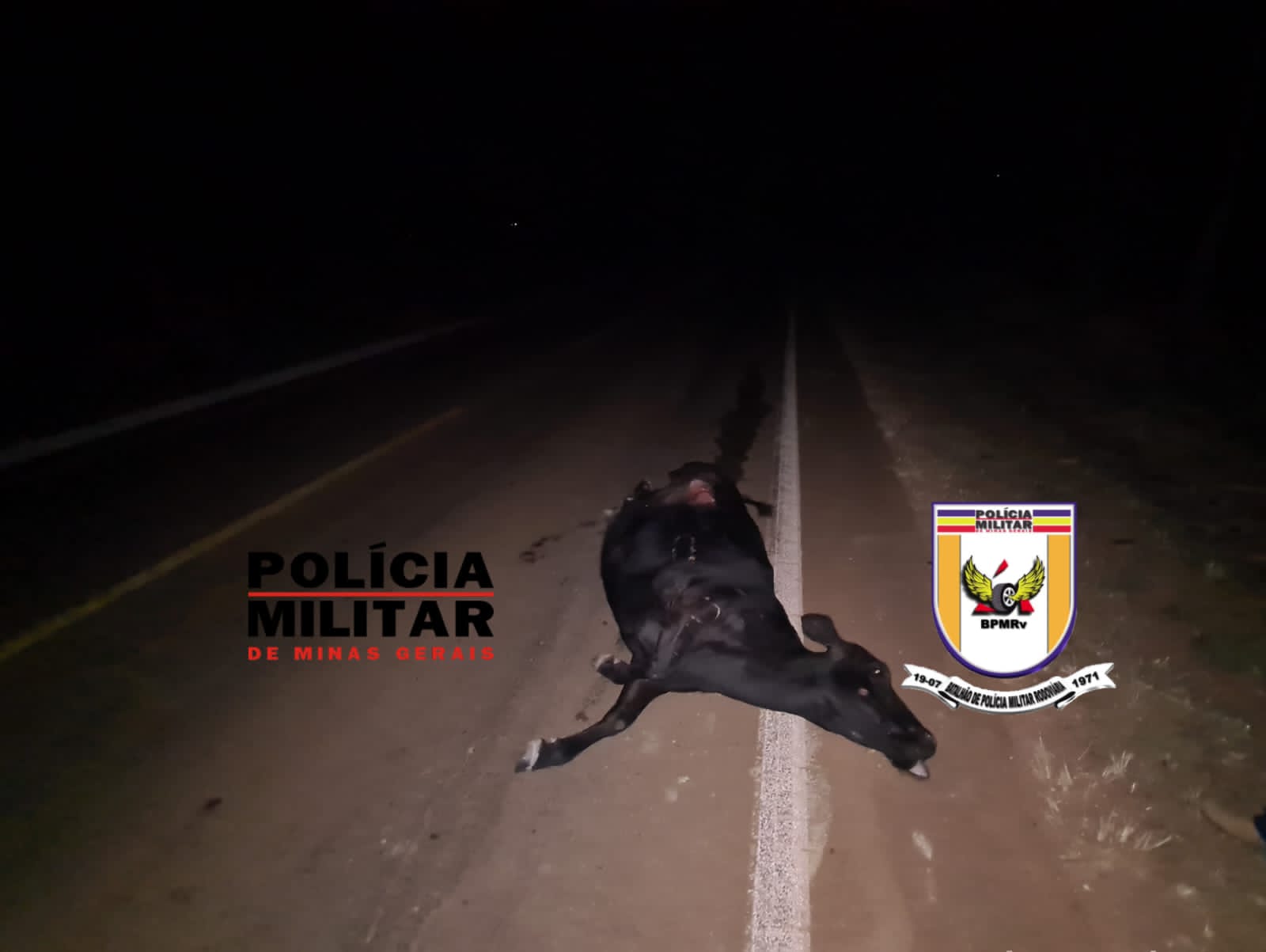 A Policia Militar Rodoviária registrou um atropelamento de animal bovino, envolvendo um caminhão Mercedes Benz, cor branca com placas de Monte Carmelo.