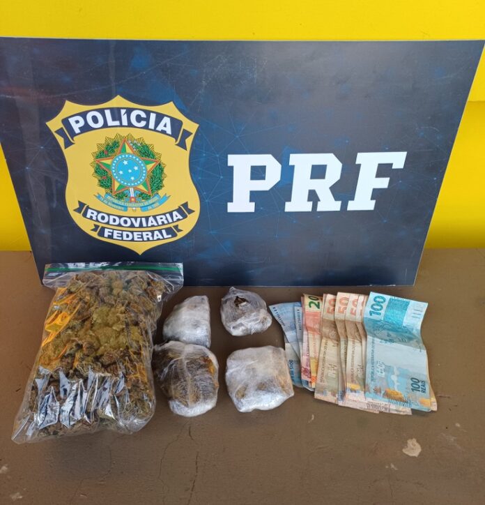 Ao se aproximarem do veículo, os policiais sentiram um forte odor de maconha. No assoalho, aos pés da passageira, foi encontrada uma sacola contendo cinco pacotes de “flor de maconha”, totalizando aproximadamente 430 gramas.