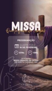 A Igreja Católica inicia nesta quarta-feira, 18 de fevereiro, o tempo da Quaresma com a celebração da Quarta-feira de Cinzas. Em Monte Carmelo, diversas paróquias divulgaram a programação especial para que os fiéis possam participar desse momento significativo do calendário litúrgico.