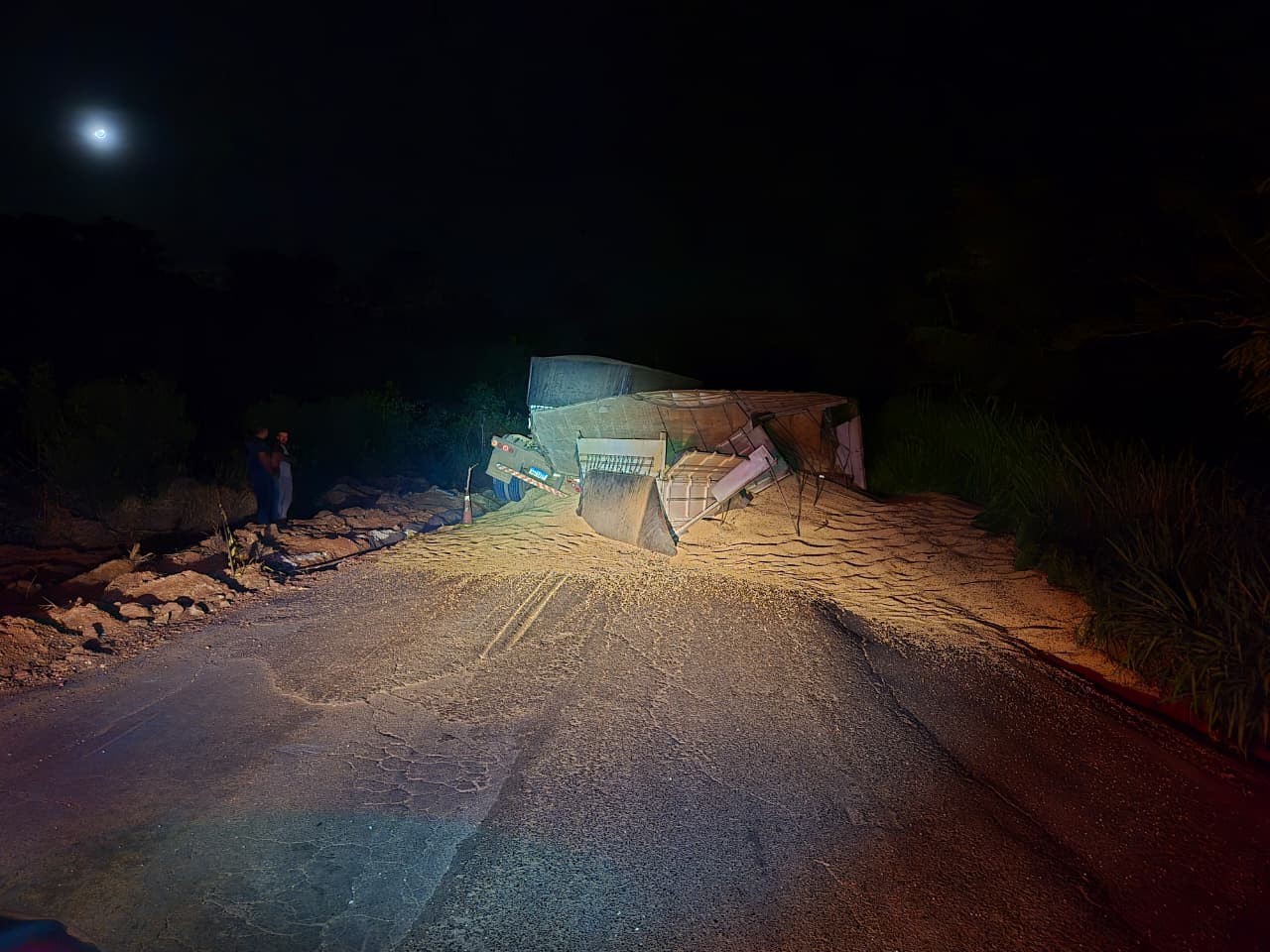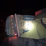 A Polícia Militar Rodoviária atendeu um acidente de trânsito sem vítimas no km 355 da rodovia MG-188, no município de Coromandel. A ocorrência envolveu o tombamento de uma combinação veicular de carga (CVC), com derramamento de grande quantidade de soja na pista. De acordo com a corporação, o veículo transportava aproximadamente 38 toneladas de soja em grãos e seguia no sentido Coromandel/Patrocínio.
