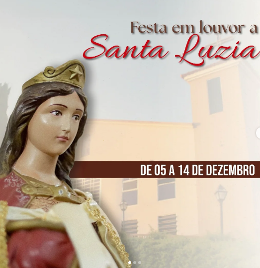 O encerramento da festa será no dia 14 de dezembro, com Santa Missa às 18h, seguida de procissão em honra a Santa Luzia.