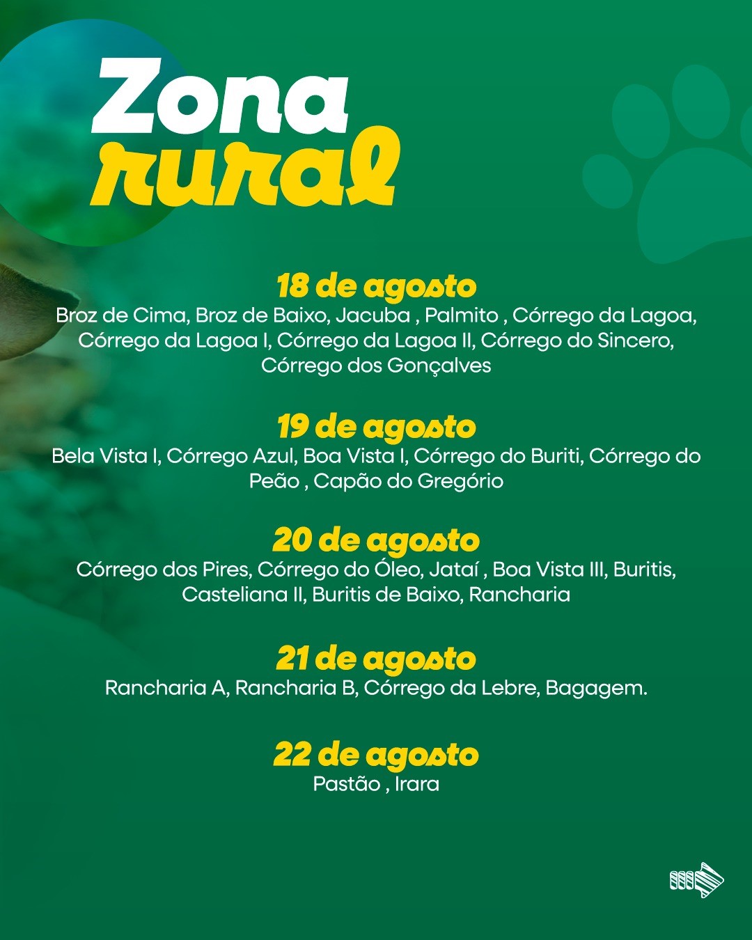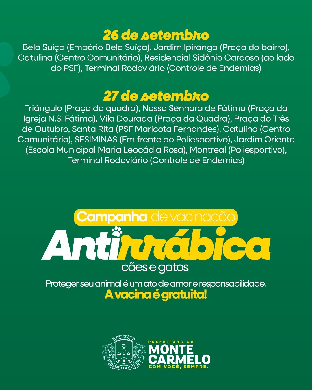 Vacinação Antirrábica na zona rural de Monte Carmelo começa nesta segunda-feira (18).